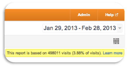 When using custom reports, however, beware of sampling. When you request a custom report from Google Analytics, you are requesting an ad hoc query (requests outside of the standard, pre-aggregated reports). In these cases, Google has to go back to the raw data to process it. If visits within that data range exceed 500,000, GA will take a daily random sample that adds up to 500,000. Additionally, it will process a maximum of 1,000,000 unique dimension combinations for any type of query. For big accounts, these limits can be reached quickly and you can end up with reports based on as little as 3% of your data.