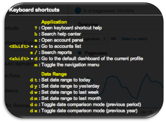 Glad i found these..I've been using google analytics for years and did not know the keyboards: