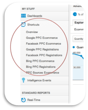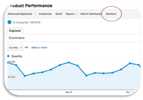 To set a report to be available as a Shortcut, simply configure the report just as you need it (advanced segments, sorting, primary/secondary dimensions, show rows etc.), hit the Shortcut link on the top navigation and name the Shortcut. The report will be available every time you access the profile on the Shortcuts list (however, it is only visible to the user that created it).