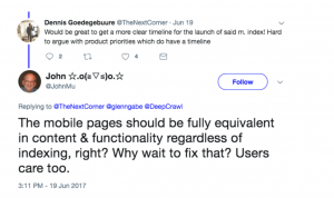 As recently as March 2017, Google’s Gary Illyes said that the company is still experimenting with the mobile-first index and that a launch date is still months away. After initial reports that the mobile-first index would launch within months of the announcement, it’s now assumed that a launch is unlikely before 2018. That means that you have plenty of time to prepare…and that there’s no need freak out!