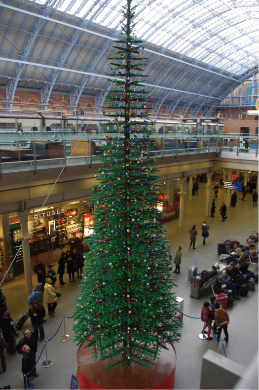 3. LEGO Christmas Tree: Here’s a tree made completely out of our favorite childhood building blocks, LEGOS. It's the official largest LEGO tree ever created. Located in St. Pancras Station, London, the tree is compiled of about 600,000 bricks, is 38 feet tall and is decorated with over 1,000 ornaments. [Image]