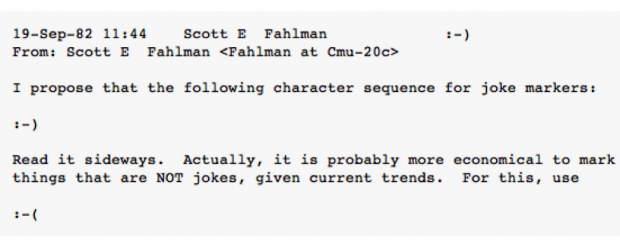 4. September 19, 1982 - The first emoticon was used. Scott Fahlman was the first person to use the emoticons : - ) and : - ( used with the specific intent to convey emotion. (source)