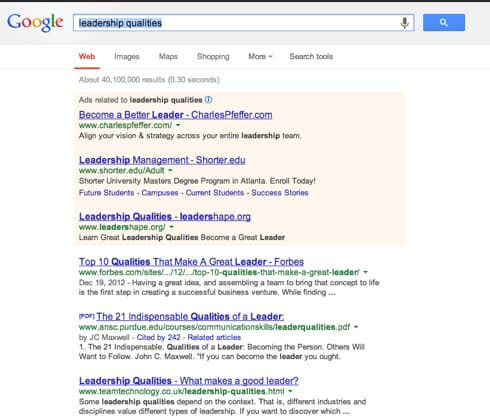 A quick search on Google demonstrates how much has been written about the topic. As you can see below, when searching for “leadership qualities” over 40 million results are found.