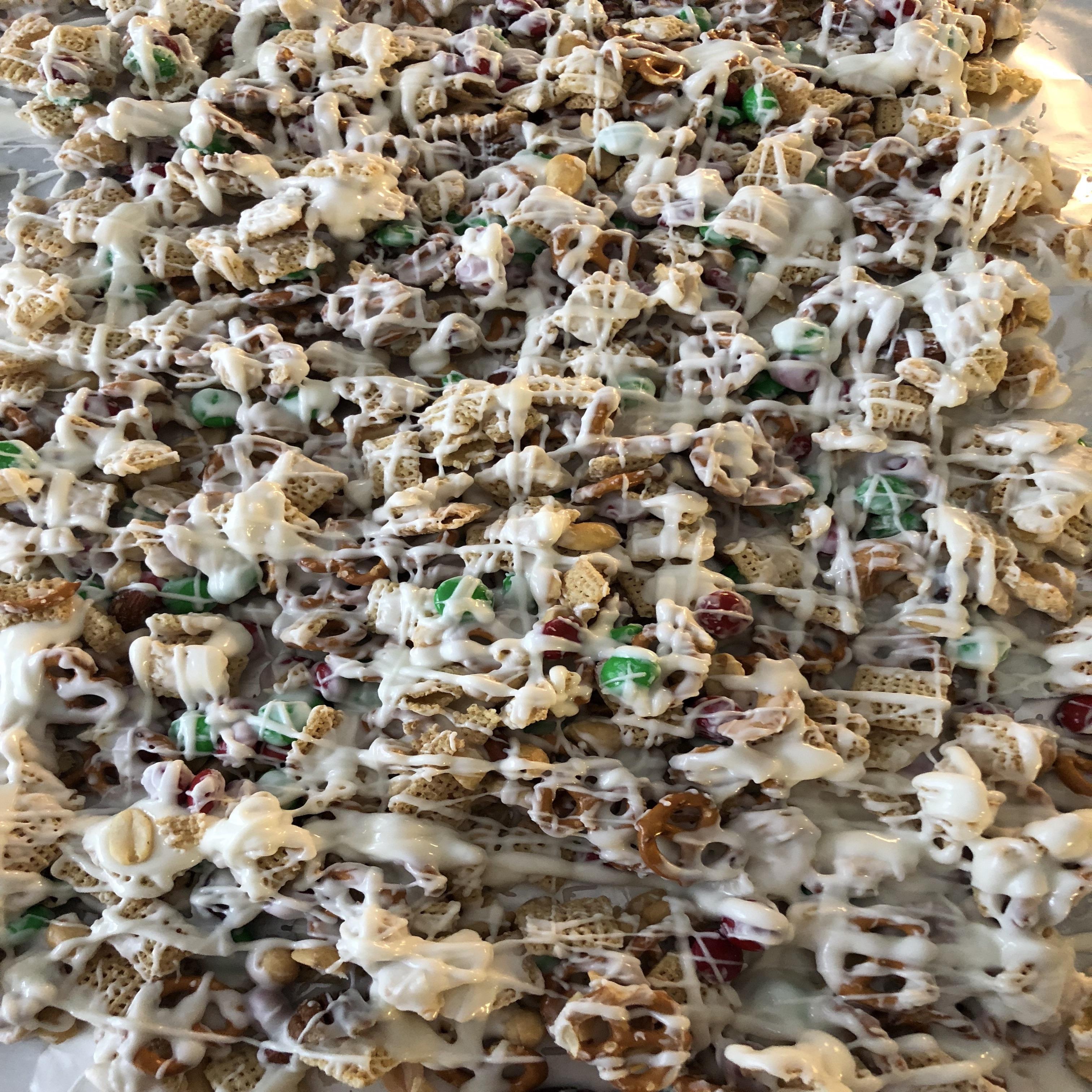 Reindeer Chow. Yum. They make a big batch for Christmas. I crave this every December now.