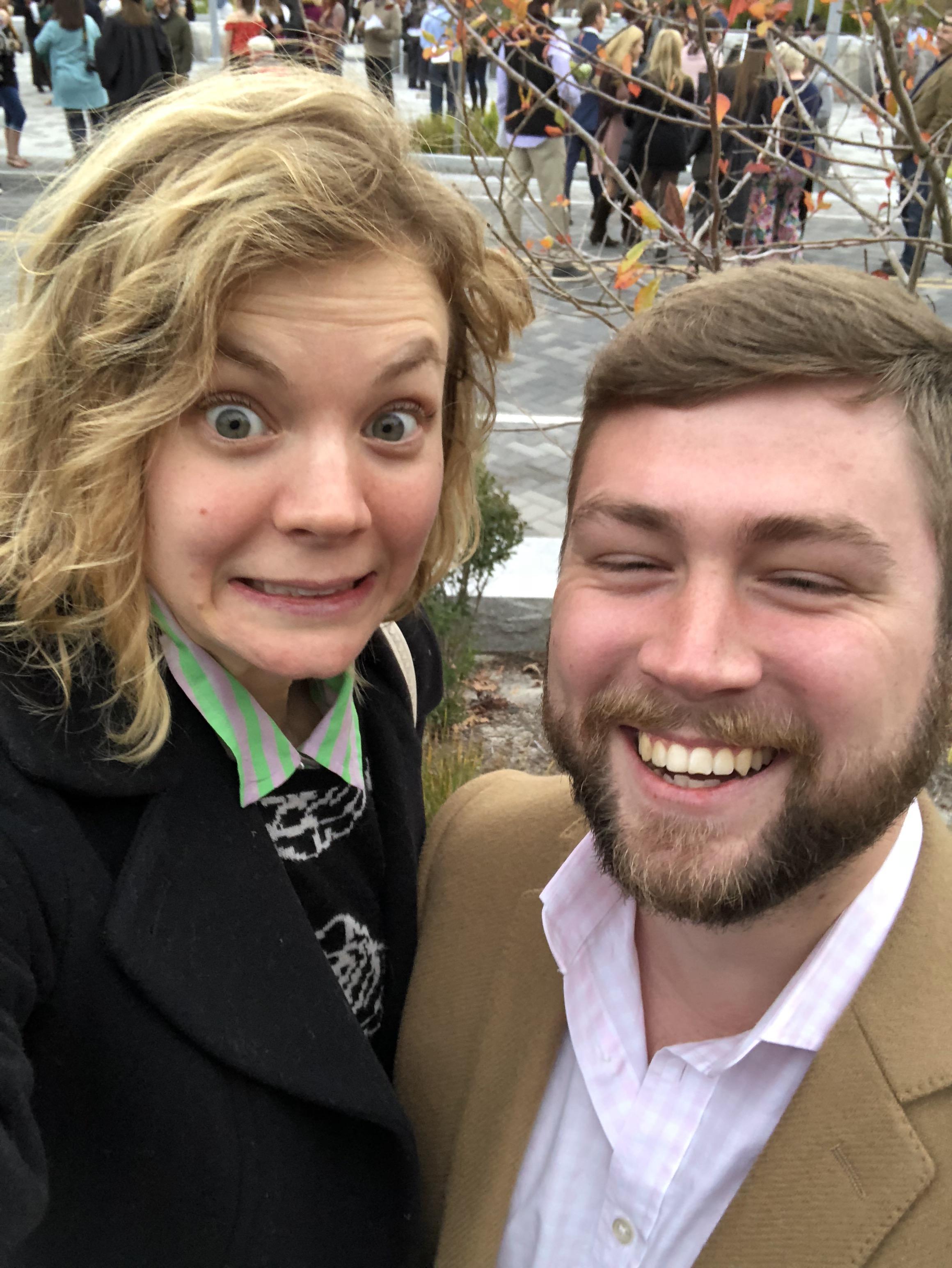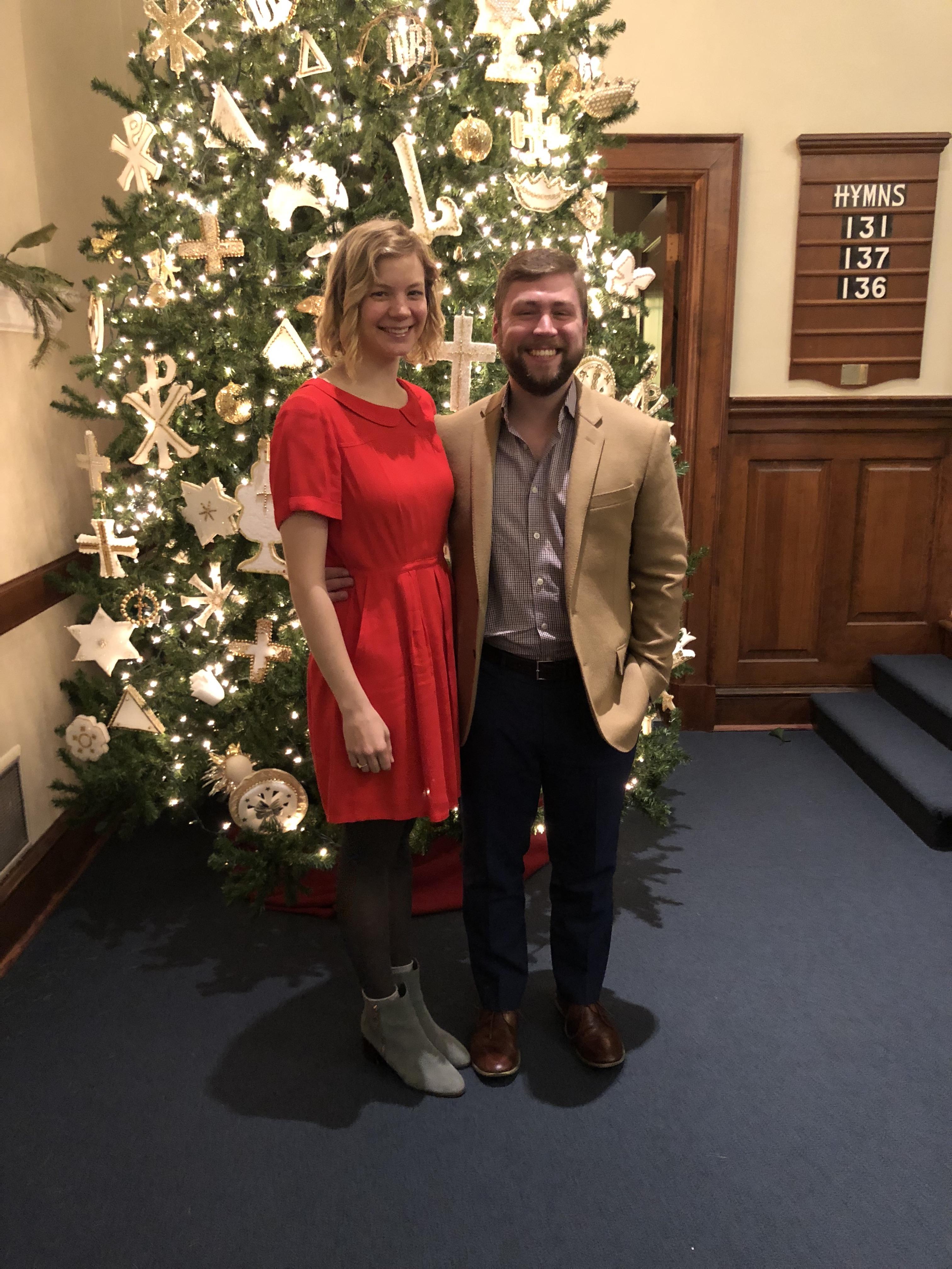 Posing for the obgligatory church Christmas tree photo.