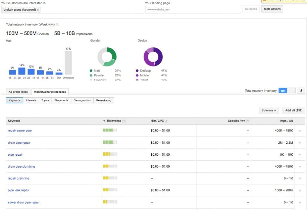 - The final tool you’ll want to review for YouTube keyword research is Google Adwords. By using the Display Planner, you can get search volume and top queries for video formats specifically, which can be really valuable when determining which terms are getting high bids and high traffic from video formats.
