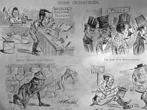 The Irish were seen as dirty, ignorant, profligate, prolific and even criminal. Depicted in advertisements and political propaganda with oversized jaws, simian features and spritely, leprechaun-like statures, the prevailing stereotypes that still afflict the Irish today were formed in that crucible of nativist hatred.