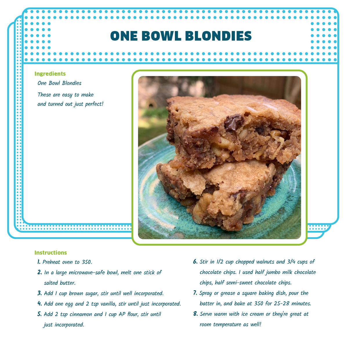 Amanda Oliver, our director of social and PR, created these one-bowl blondies. “These are easy to make and taste delicious!” says Amanda. By the look of it, we couldn’t agree more.