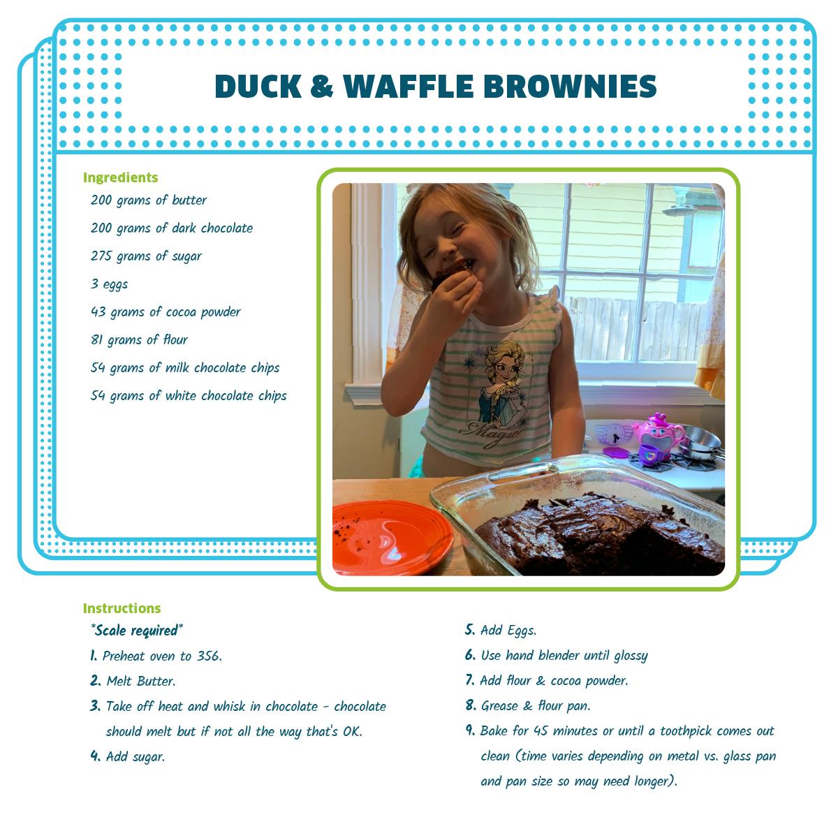 Stephanie Wallace, vice president of earned media, made brownies with her daughter, Sophia. This recipe hails from a London restaurant named Duck & Waffle, where Stephanie’s friend was a pastry chef.