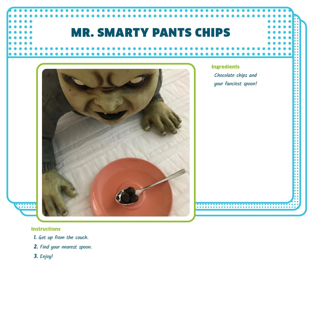 Zombie Baby, our undead office mascot, decided he would make an amazing recipe for Chocolate Chip Day. Turns out, he can’t read. So instead, our director of HR, Sherry bailed him out with this fabulous chippy creation.