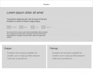 The process of researching and drafting provisional copy helps to get a sense of what we want to say on the page and how long it takes to communicate those messages. For example, we originally added a lorem ipsum sentence for the description of the grapes. But after drafting some provisional copy, we realized it would be better served as a list than a lengthy description. It’s a subtle change, but it impacts the experience and it impacts content planning.