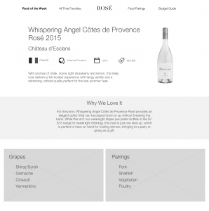 Our example in this case is a website about rosé, because … rosé … and why not? For this example, we’ll be looking at a page of the website called ‘Rosé of the Week’.