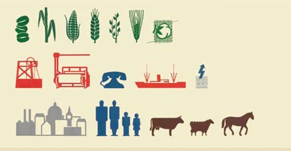 With an uneducated working class, Neurath knew he’d only be boring his audience to death by trying to explain dense statistics with a bunch of big words. Instead, Neurath called upon his childhood fascination with hieroglyphics to help the populace understand what was going on with their government. Neurath created giant colored diagrams of the increases in poultry-breeding and vegetable production using simple pictures of chickens and carrots. And thus, the ISOTYPE was born.