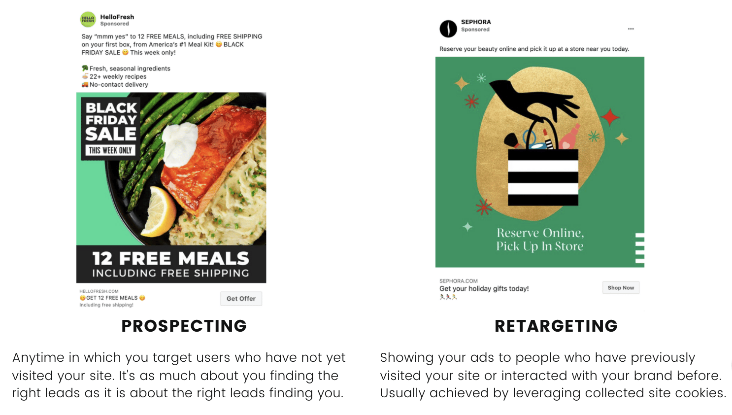 Prospecting is done all in hopes of increasing new customers as you introduce your brand to someone who has not been to your site before or interacted with your brand before on social media.