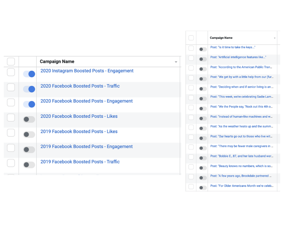- Having campaigns separated by year helps with organization and quick data comparison.