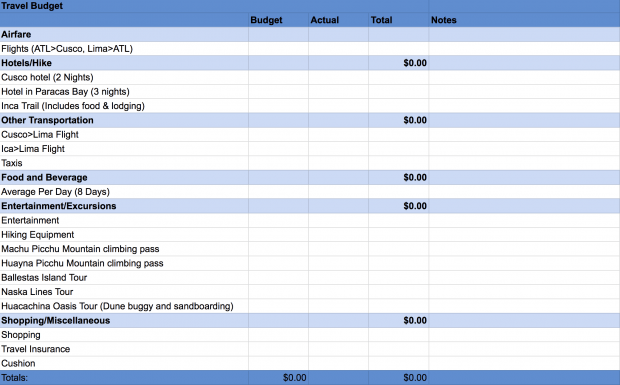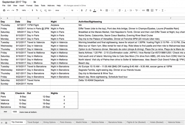 The biggest error most people make in traveling is doing too much at once and getting overwhelmed. As a project manager, doesn’t this sound familiar? That’s where spreadsheets come in. Whether you’re planning your itinerary or budgeting your trip, there’s nothing more handy than a Google Sheets doc.