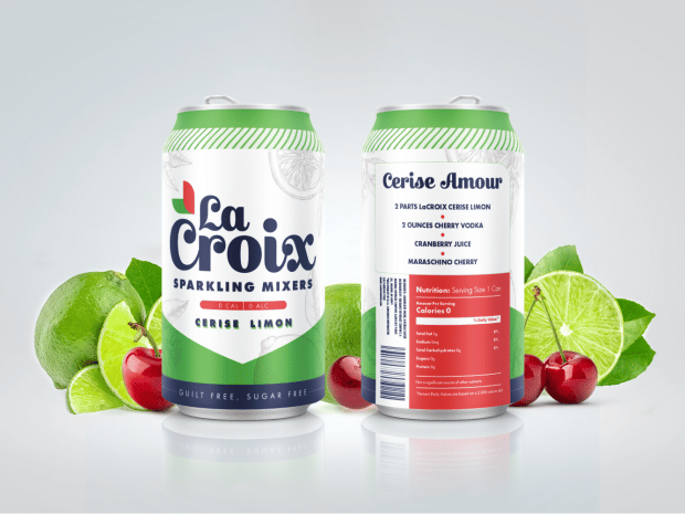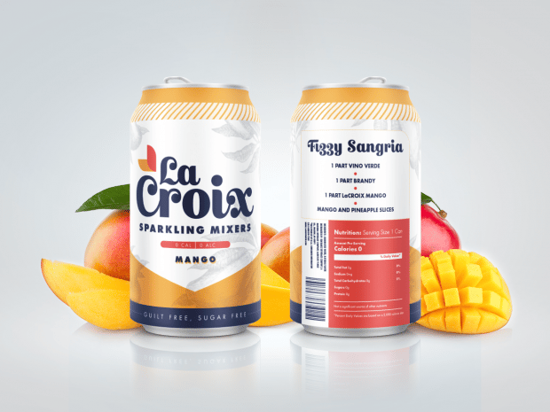 This design doesn’t redesign the LaCroix can — it nixes it all together. Trading in the bulky can for a sleek glass bottle, this version of LaCroix (pronounced the French way) appeals to Pellegrino lovers who know there’s nothing more important than high-class hydration. With a resealable top and an aesthetically appealing design, these bottles are meant to be a visual focal point that can play a lead role at any dinner party. After all, you want everyone to know you drink fancy, bubbly, flavored water.