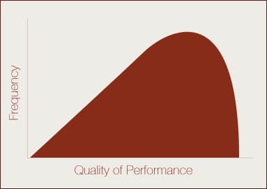 The reality is: your performance curve is much more likely to resemble a bell curve than a shark fin.