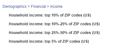 Household income by ZIP code is an addition that can help qualify your audience even further