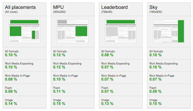 From Google: “Want to understand how your display campaigns compare to those across the rest of the ad industry? Or how different ad formats and sizes perform compared to each other? This tool lets you pull up-to-date industry benchmarks such as click-through rate, interaction rate and time, expansion rate and video completions. You can slice the data by country, vertical, ad size and ad format, and can view it as a map, data snapshot, or a trends view.”