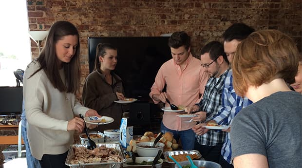 Here at Nebo, we held our Thanksgiving potluck on Monday. And while some may view a holiday potluck as a waste of time or an obstacle to productivity in an office, we disagree.