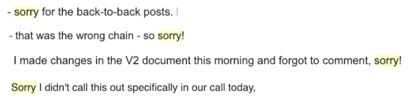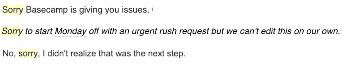 I did a search in my email for “sorry” and found that we women of Nebo have been apologizing for things that aren’t offensive behavior. Here are just a few examples. One of these is from me 🙈.