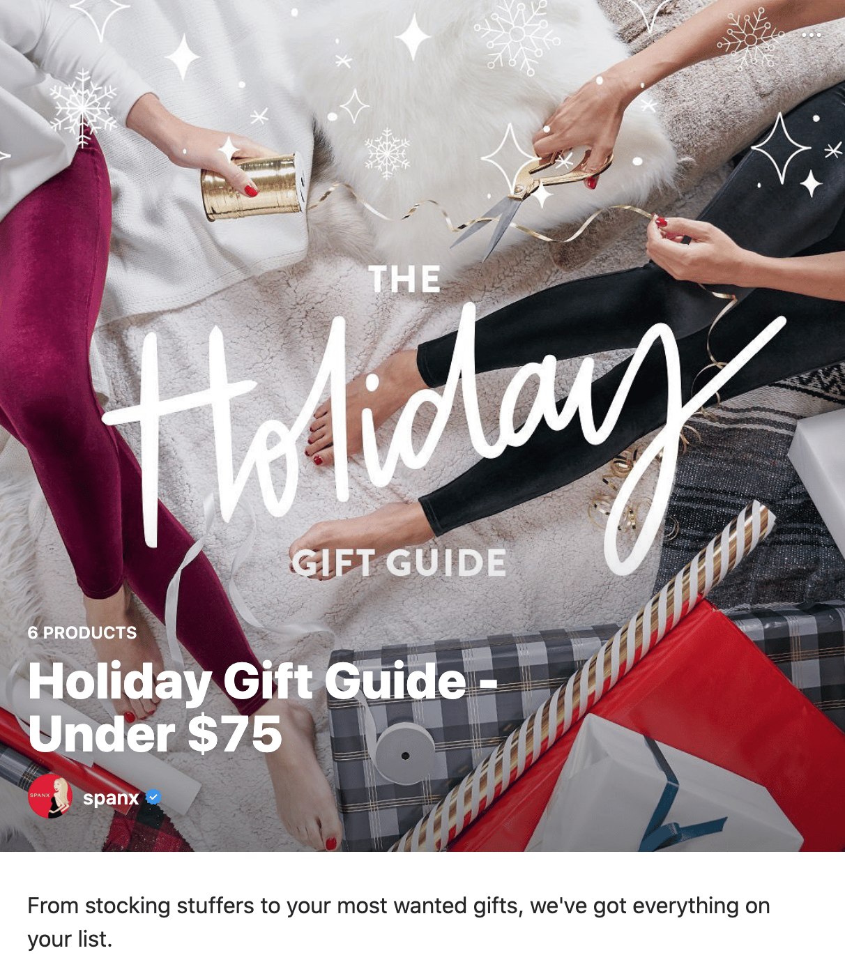 Spanx took its holiday gift guides to Instagram this year, creating this Guide showcasing its products in a roundup that is easy to browse and shop for any followers looking for their next purchase. 🎁