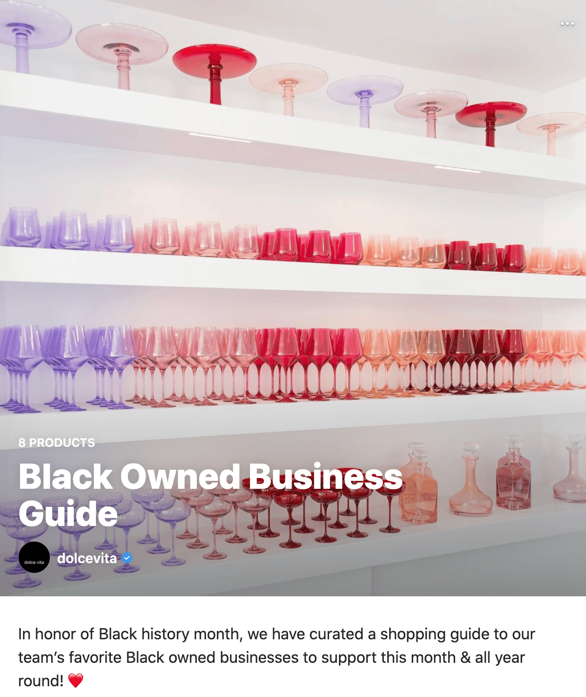 Lastly, Dolce Vita recently posted this Guide at the beginning of Black History Month to highlight Black-owned businesses. It emphasizes the fact that Guides are designed to be a point of discovery so you can follow all of these stellar brands. 🙌