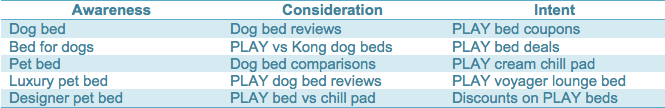 Intent differs from motivation in that while motivations are the internal driving force behind decisions made, intent is what a user is attempting to do at a given moment. Search engines are essentially tools to decipher user intent, and they’re fairly good at it. The buyer journey should be integrated into keyword maps, with longer tail (more specific) keywords appearing later in the journey. For instance: