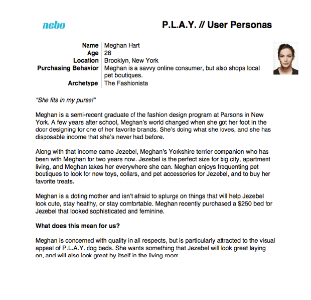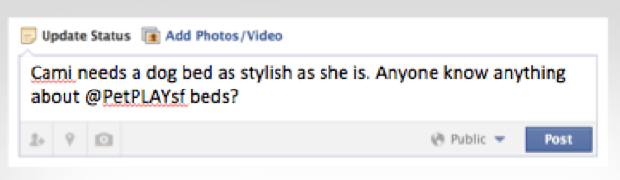 I wanted friends and family to validate my choice, plus I wanted to know that the brand's personality truly fit Cami’s. So I took to social media, talking to friends and checking out Tweets from dog bed brands before finally deciding to go with beloved dog bed producer P.L.A.Y. Full disclosure: P.L.A.Y. is actually also one of our beloved clients.