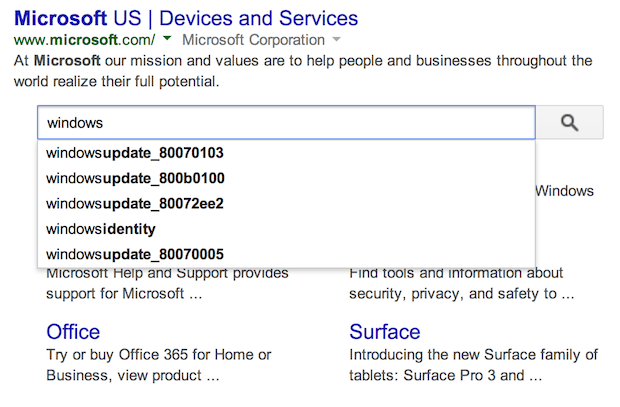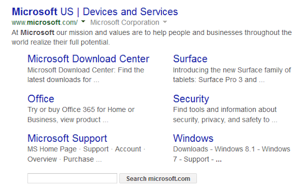 In the past, when a user would search for a specific company Google understood that the user wanted to see results from that site only. Google would display added site links as well as a smaller search box that would allow users to perform site: searches within the search results. For example, if you used this search box to search for computers on Microsoft.com, you would be taken to the results page for [site:microsoft.com computers]: