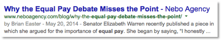 One of the primary benefits to implementing Google Authorship markup: the fancy author photo in search results of course! While Authorship markup is designed to serve as a quality indicator, the rich snippets in SERPs also help increase click through rates. And let's be honest, people like seeing their pictures in Google's results.