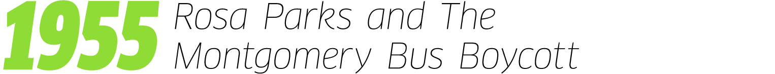 Rosa Parks refused to give up her seat to a white man on a Montgomery bus in Alabama. This inspired a civil rights protest amongst the local black community in Montgomery, and is a cornerstone event in the civil rights movement. Read more.