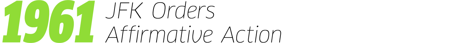 In 1961, President John F. Kennedy signed an executive order requiring government contractors to hire more African American workers stating in an executive order, "take affirmative action to ensure that applicants are employed, and employees are treated during employment, without regard to their race, creed, color, or national origin." Read more.