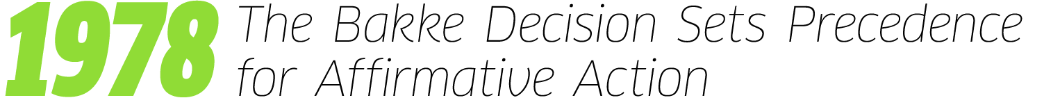 Allan Bakke was unfairly denied admission twice to the medical school at the University of California at Davis because of the school's quota system. In his decision, Powell unknowingly shifted the meaning of affirmative action and inadvertently changed the ways colleges and universities recruit and enroll racial minorities. Read more.