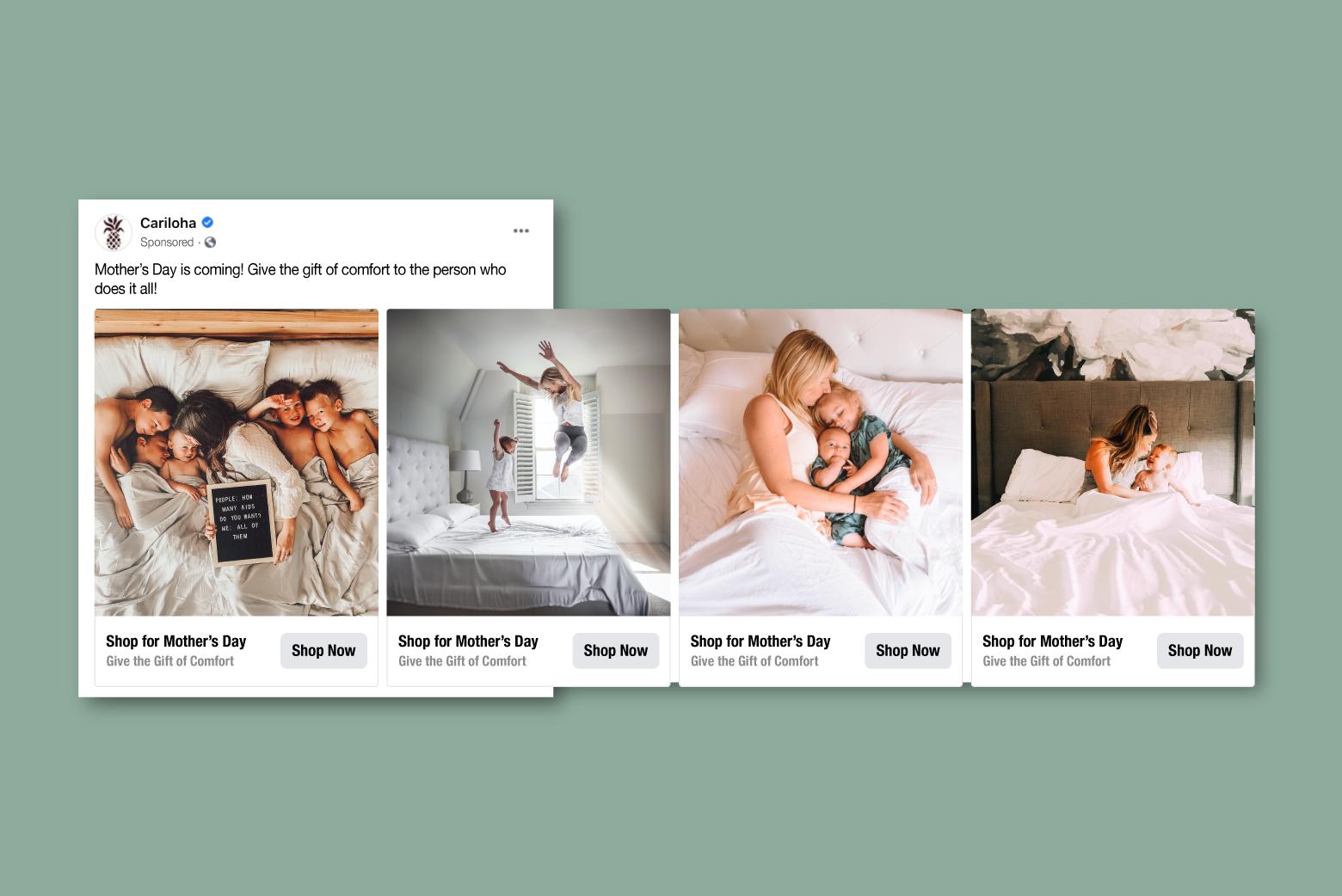 After finalizing our target audiences and understanding their digital and social behaviors, Nebo moved forward with outlining a buyer journey-centric approach for paid social campaigns. To boost awareness, Nebo aimed to introduce Cariloha and educate consumers on the concept and benefit of their products, tailoring unique product benefits for each target audience with lifestyle imagery catered to each persona.