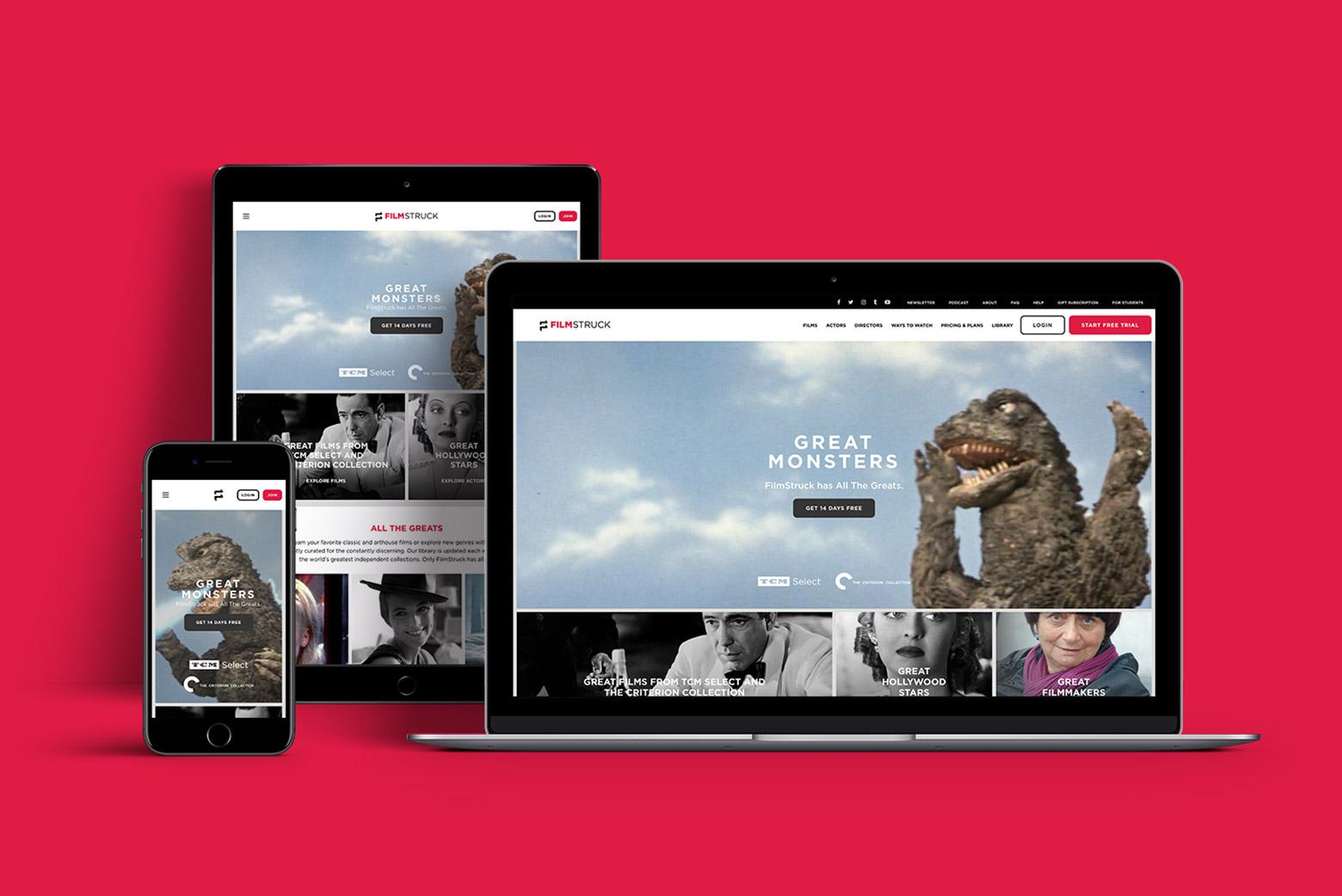 Once the service was live, Nebo launched a more fully-featured responsive website that put arthouse films and auteurs at the center of the digital experience — introducing key benefits, promoting the free trial offer, showcasing device availability and allowing cinephiles to explore the films and directors offered on the service. Targeted messaging made the case that, through FilmStruck, viewers could experience the films and directors who shaped the history of cinema. And through user testing and A/B testing, Nebo optimized the experience in order to maximize subscriber conversion rates.
