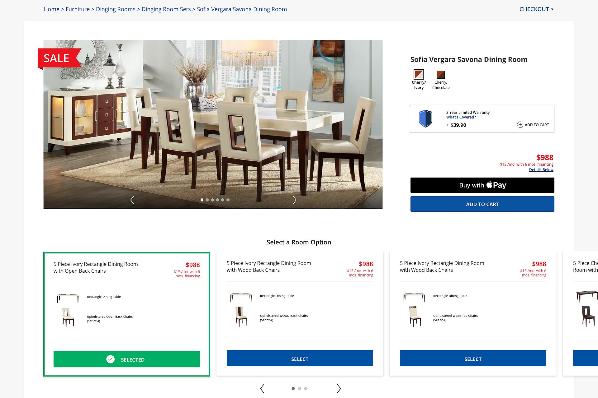 Rooms To Go came to Nebo with a website experience that worked, but not nearly as well as they would have liked. The path to product could be confusing, leaving users struggling to get to the right subset of products. Product landing pages were similarly overwhelming, without enough immediate clarity between products, an issue which carried over to the detail pages where there wasn’t sufficient differentiation between different packages. Search was functional, but had a number of unutilized features, and checkout was a multi-screen process that lacked effective methods of upsells and didn’t elegantly integrate various payment options.