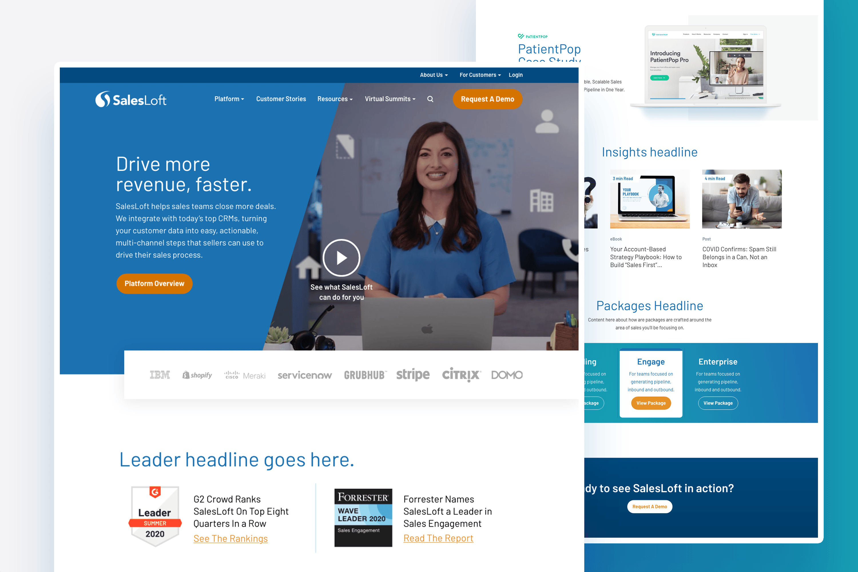 Rapid growth is good news, but SalesLoft was unable to scale their website with their brand or speak to their new audiences. They partnered with Nebo to optimize the website, enhance the experience and scale to meet new business demands.