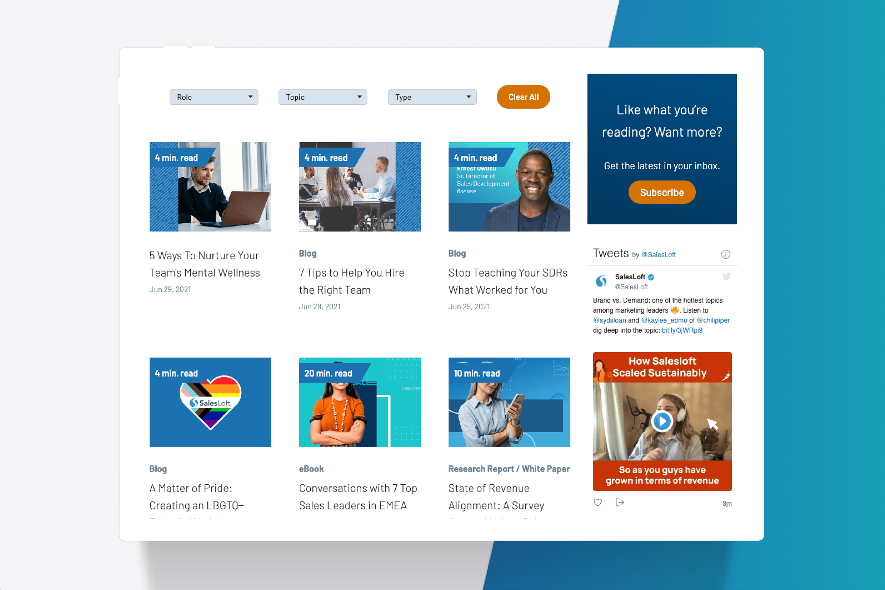 Nebo implemented a range of new functionality for the CMS. We exposed post data within the CMS and developed a Content Hub for the website, making it easier for the SalesLoft team to highlight key content pieces to users. All of this ultimately helped support the SEO strategy.